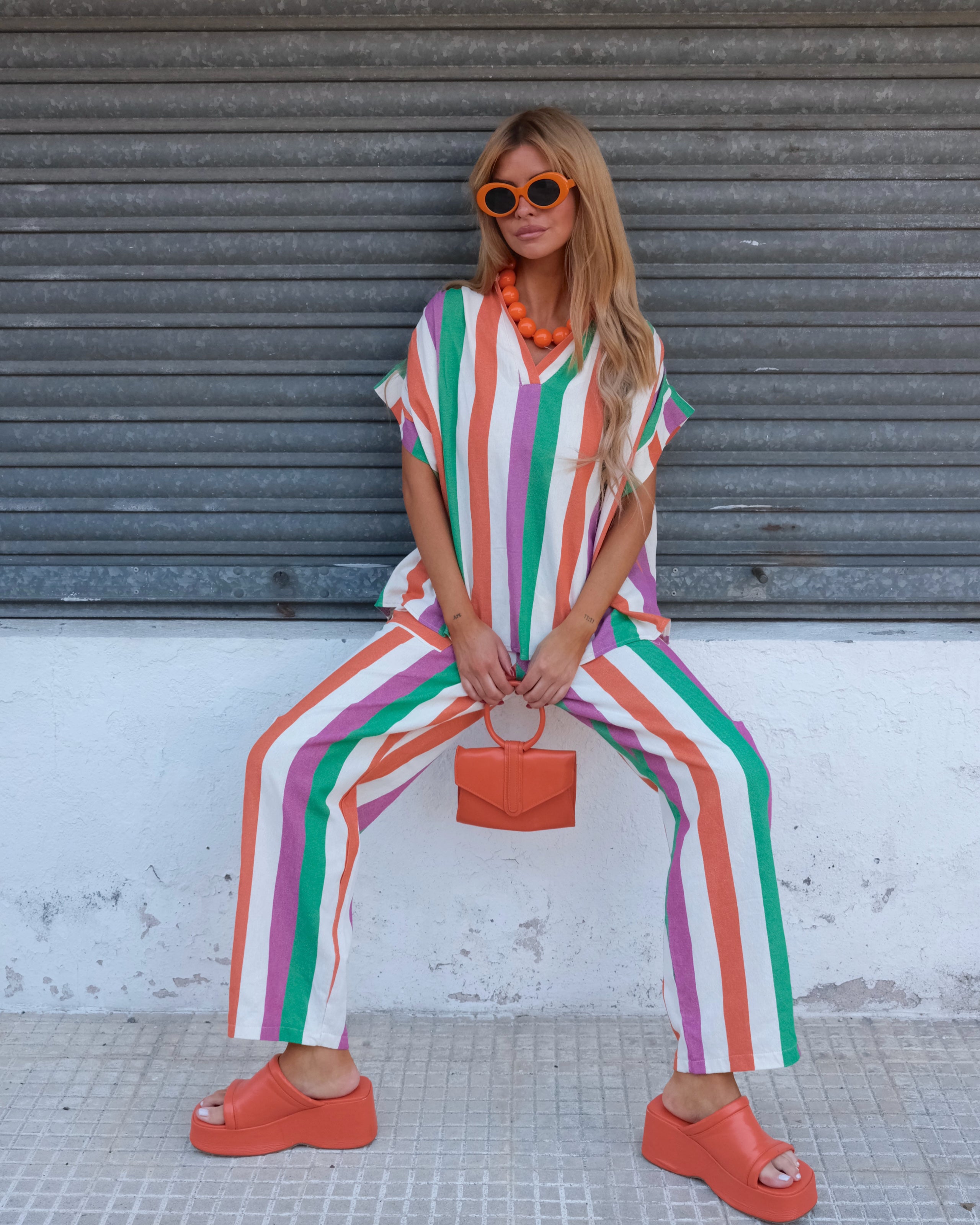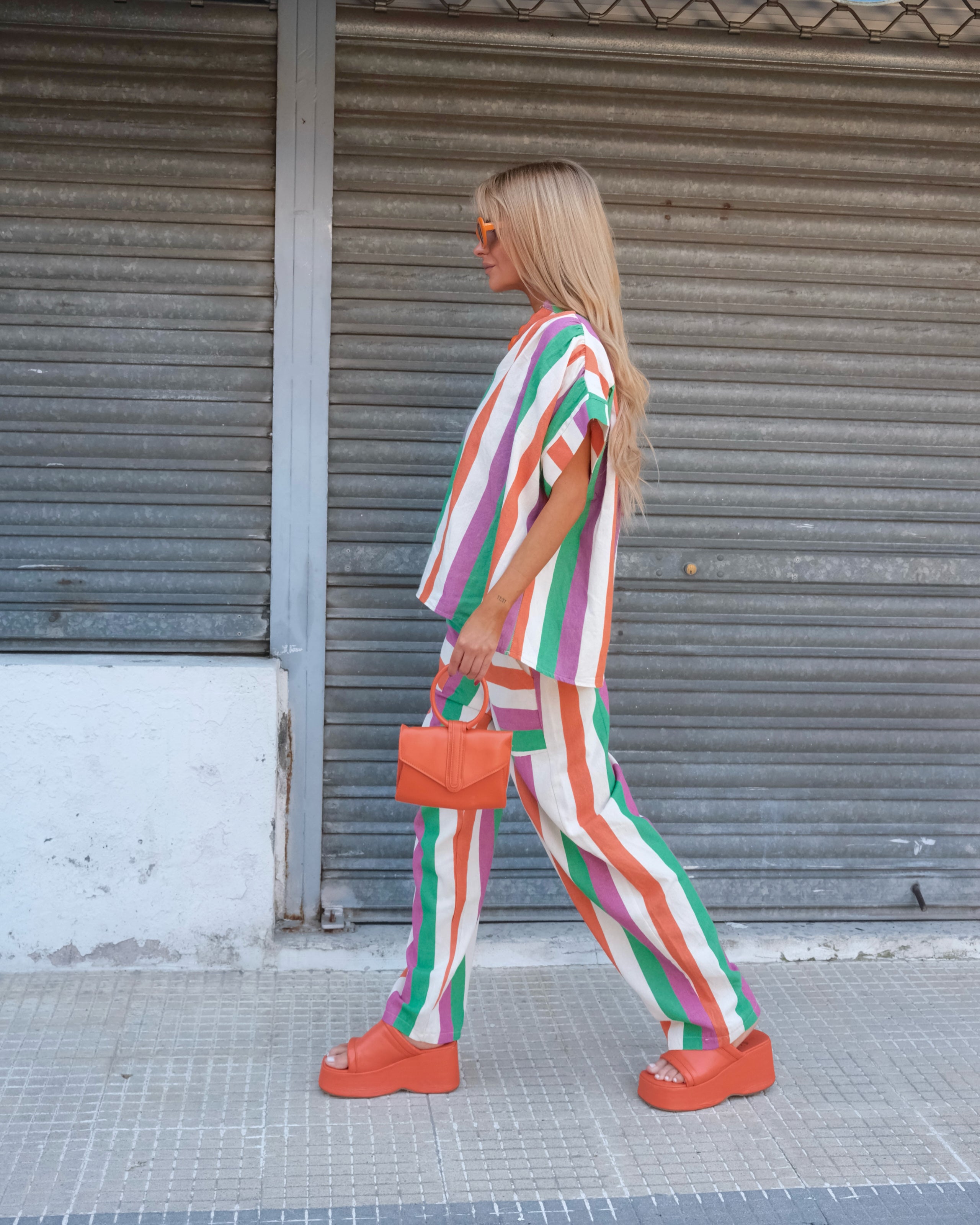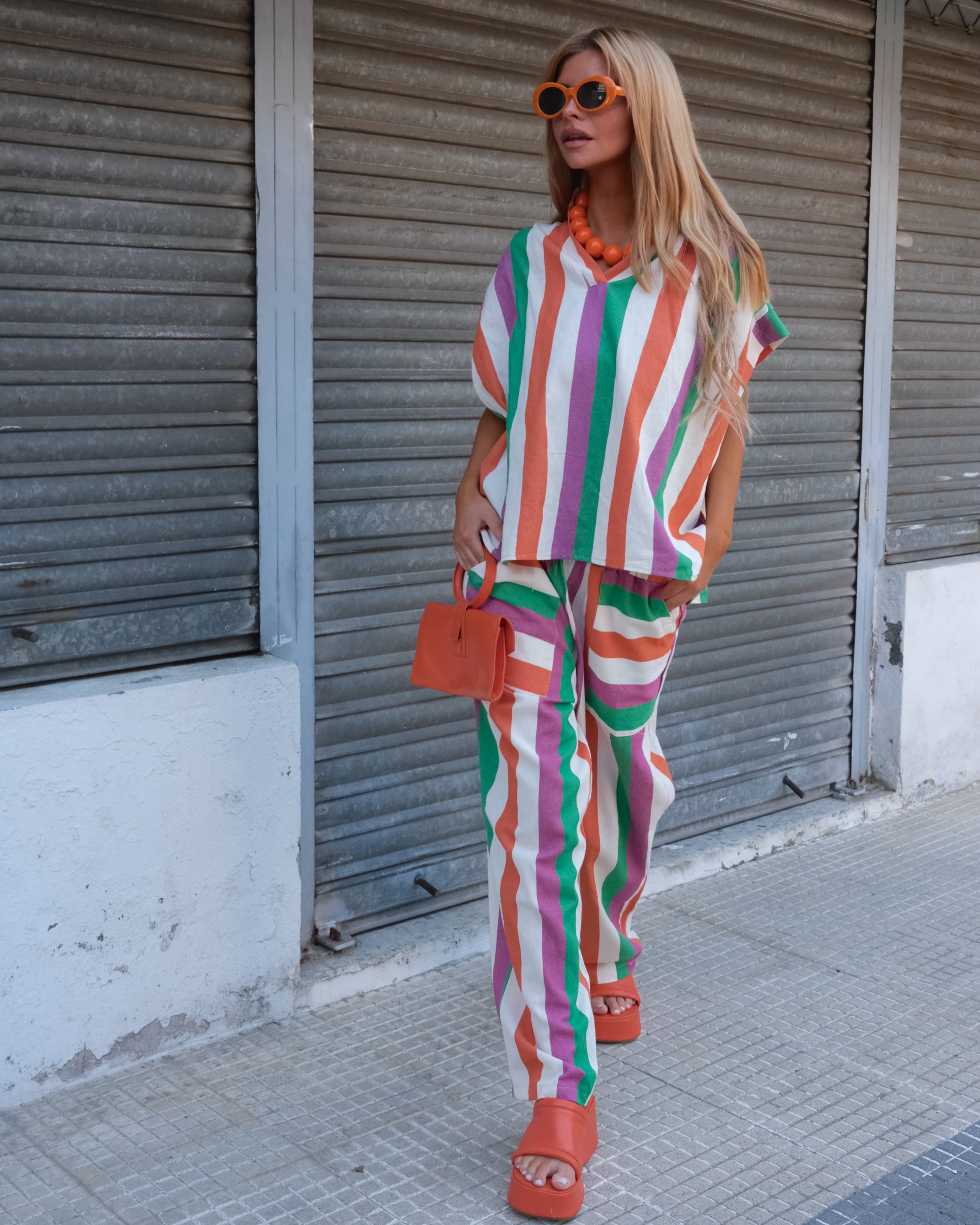 Calça com corte reto, de cintura subida, com elástico e bolsos na lateral. Uma peça descontraída e com muito estilo.