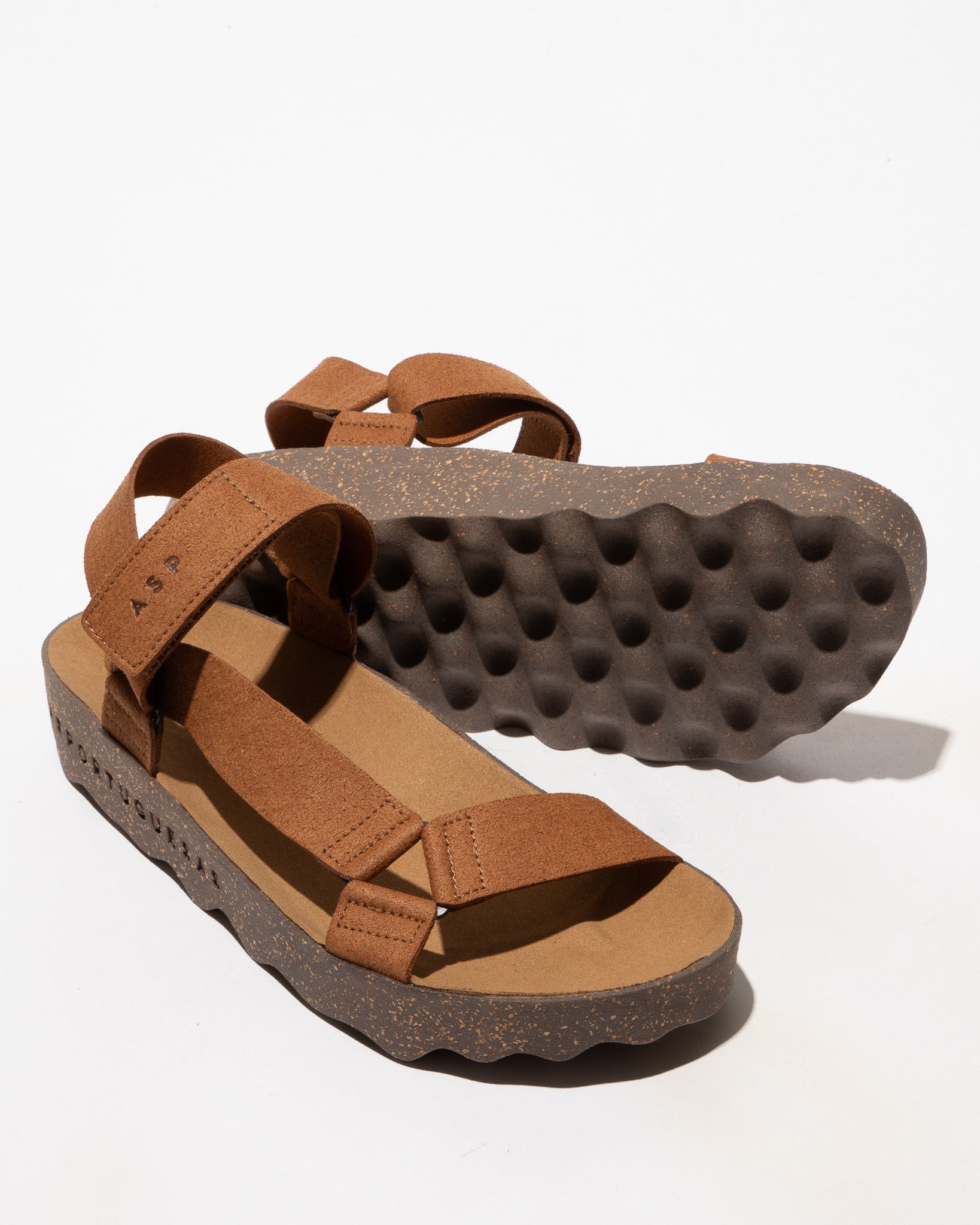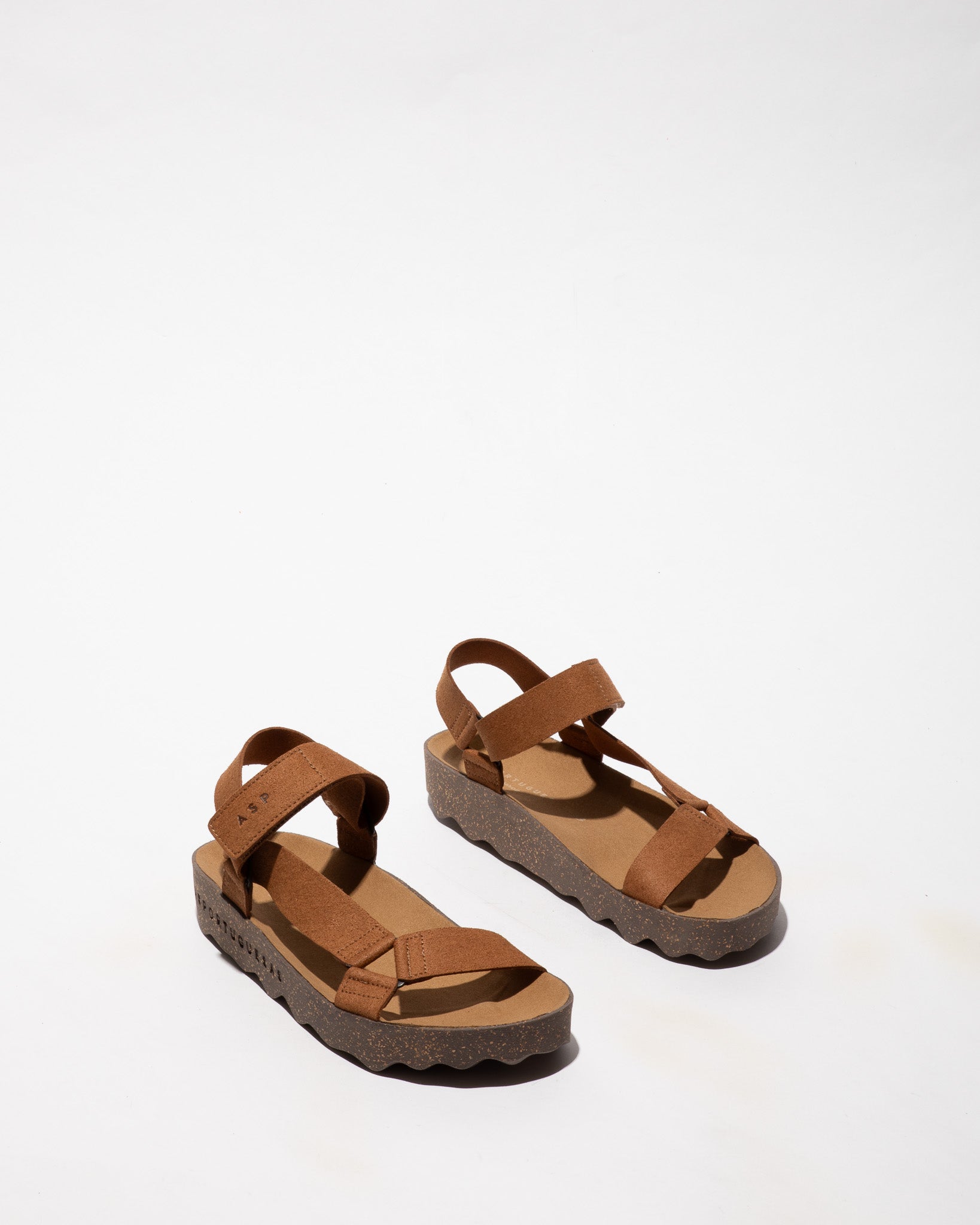 Sandálias de velcro de microfibra reciclada no tom preto.