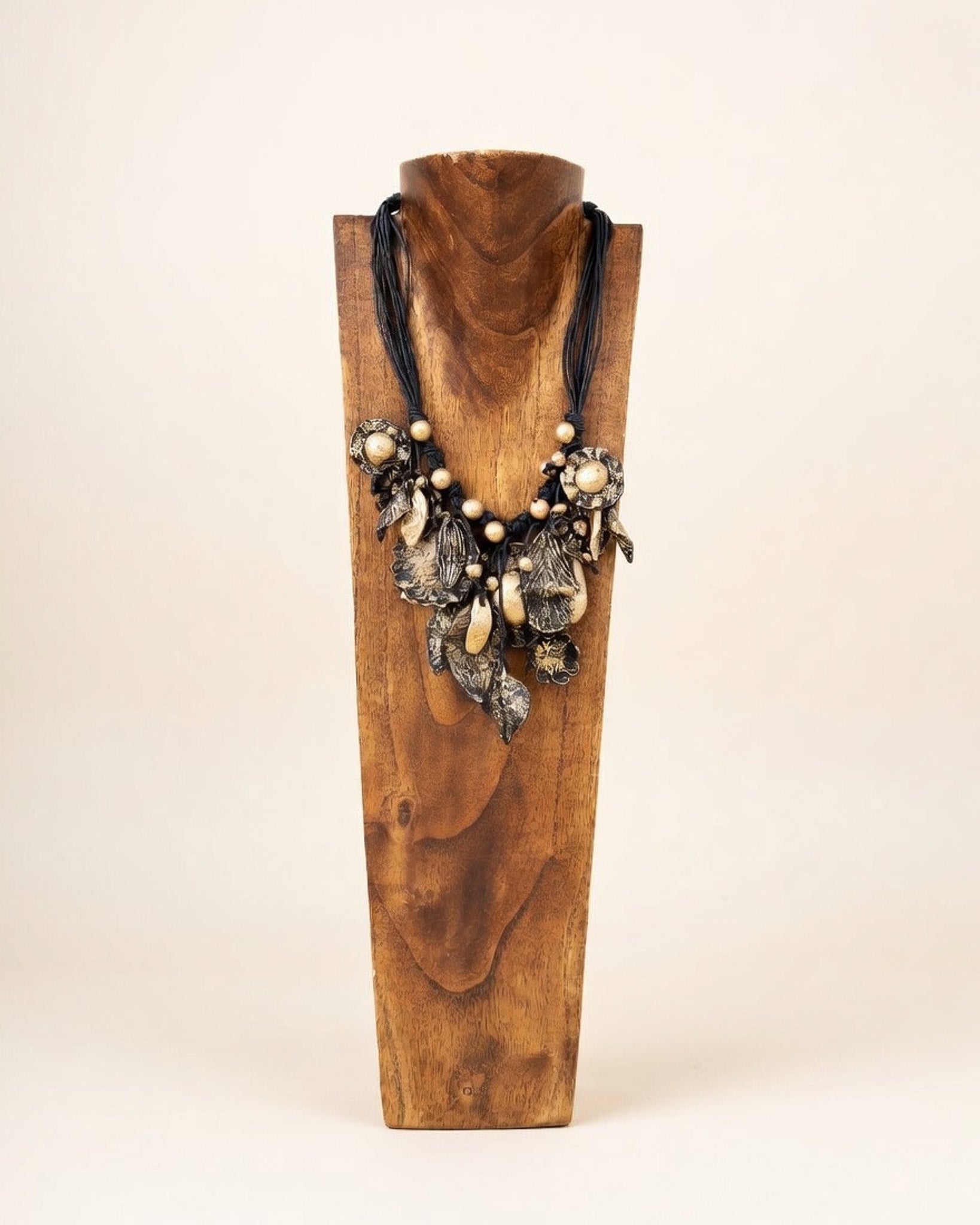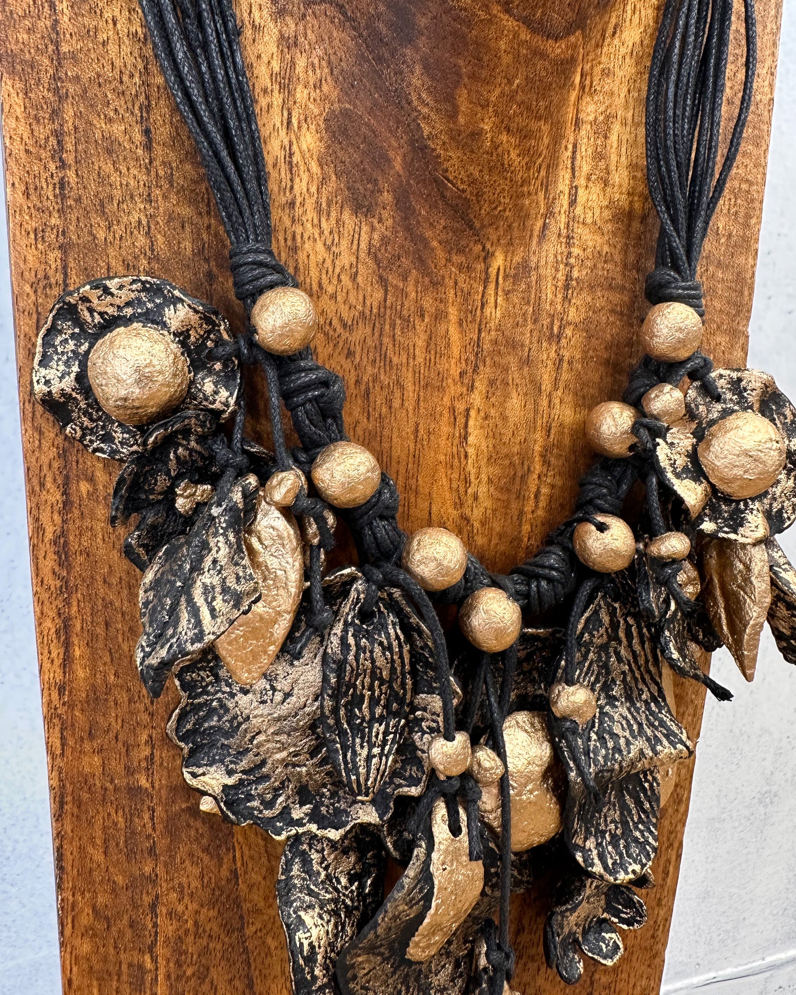 Colar no tom preto com pintura a em dourado. Peça versátil e elegante, perfeita para complementar qualquer look do dia a dia ou ocasiões especiais. Design sofisticado que combina com diversos estilos de roupa.