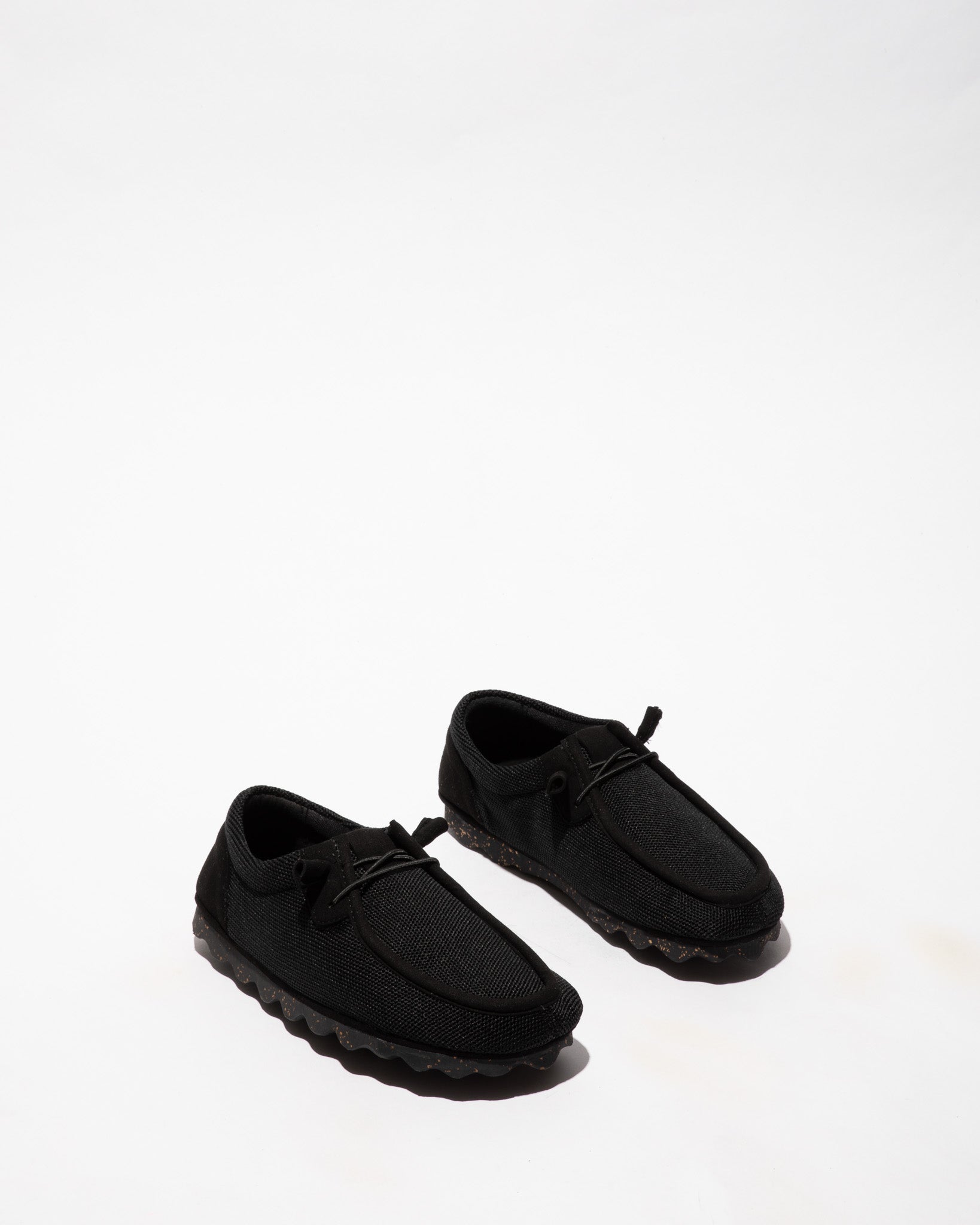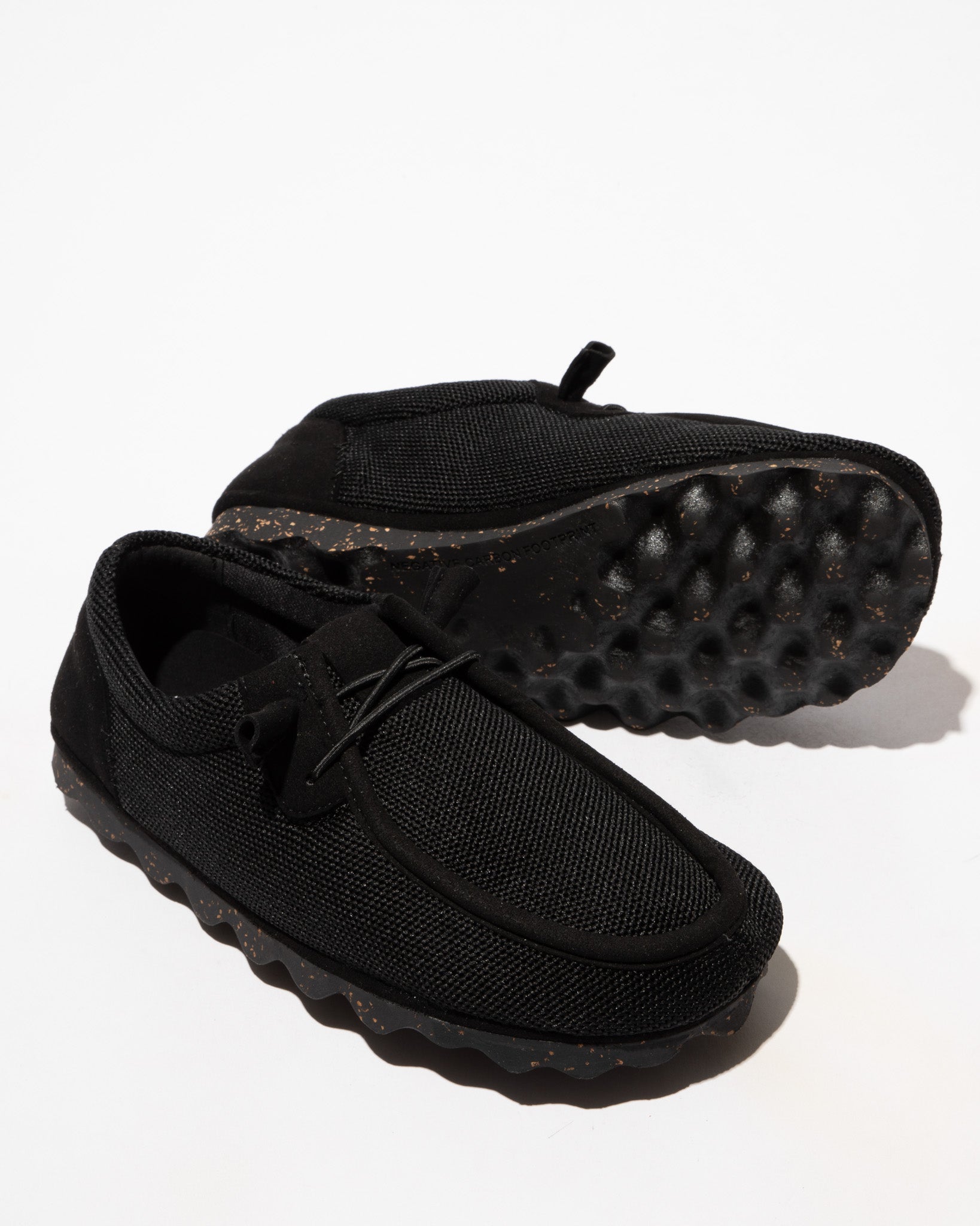 Ténis de malha reciclada e elásticos.