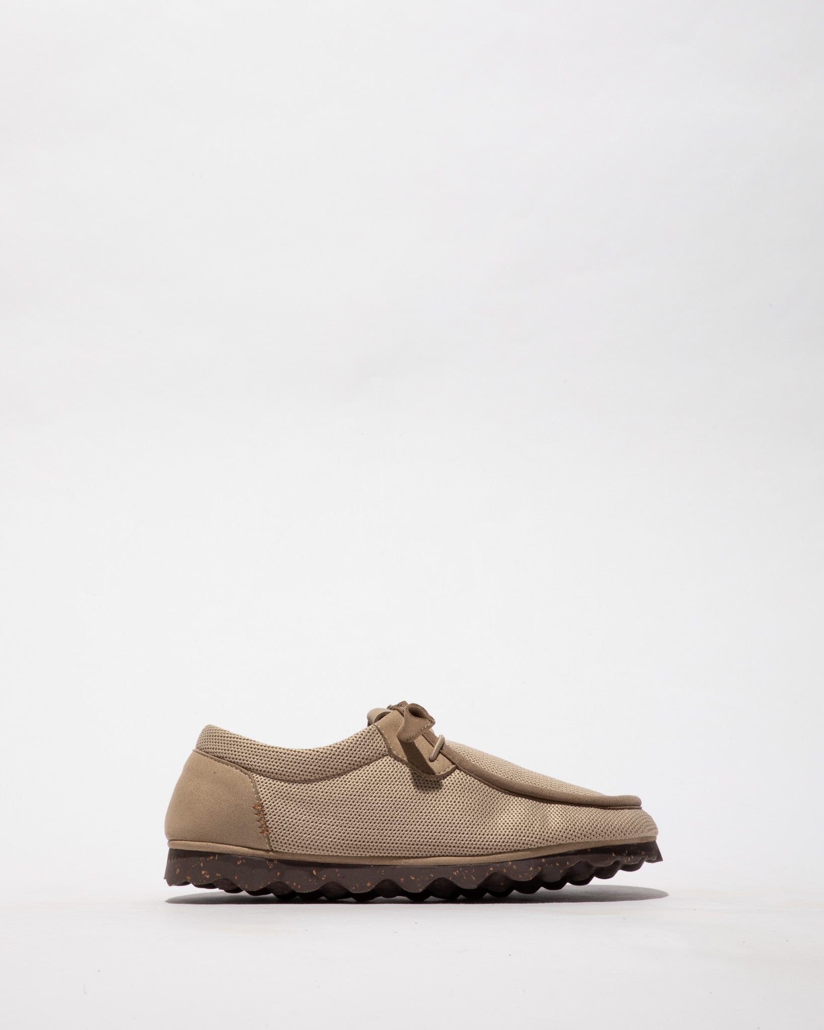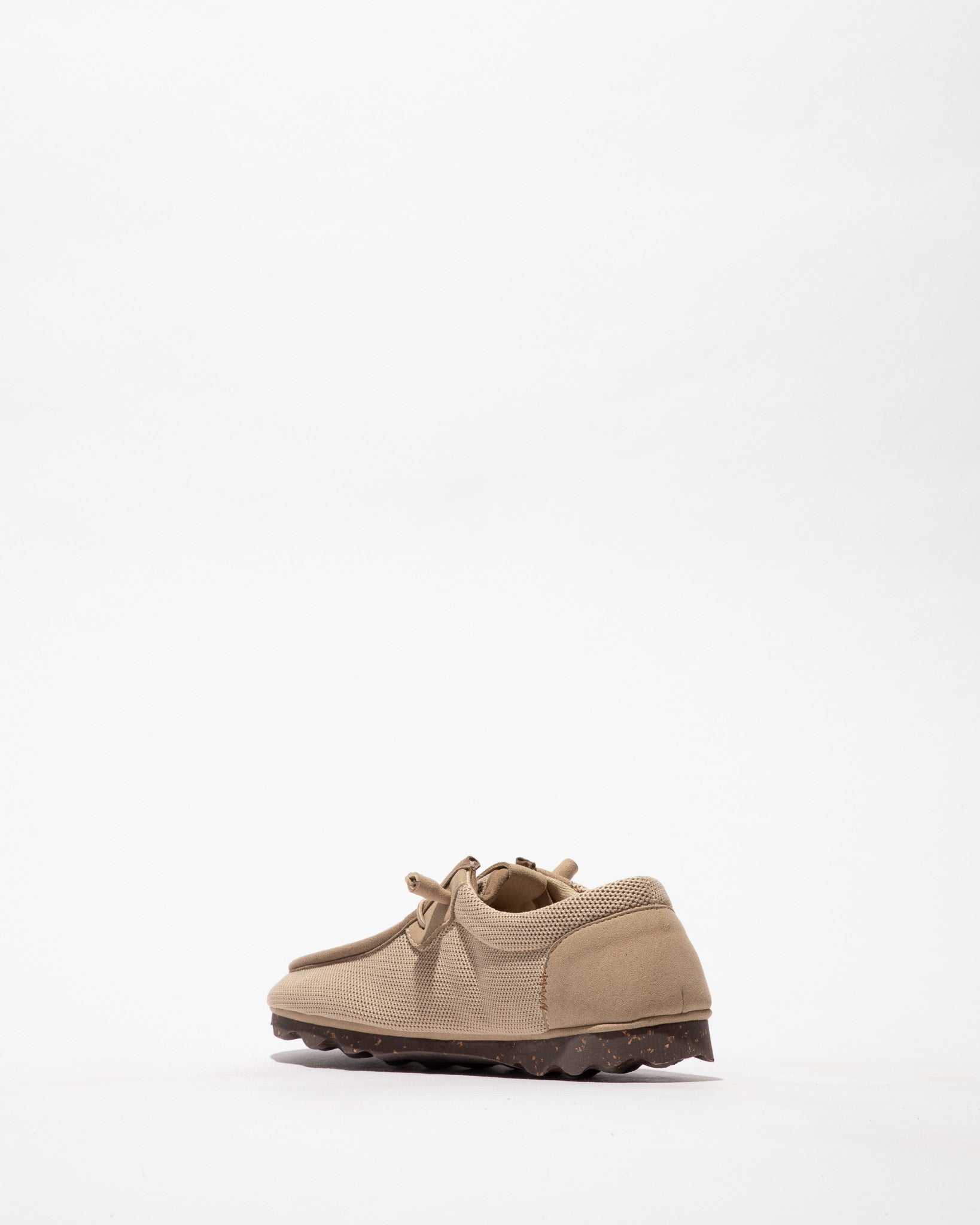 Ténis de malha reciclada e elásticos.
