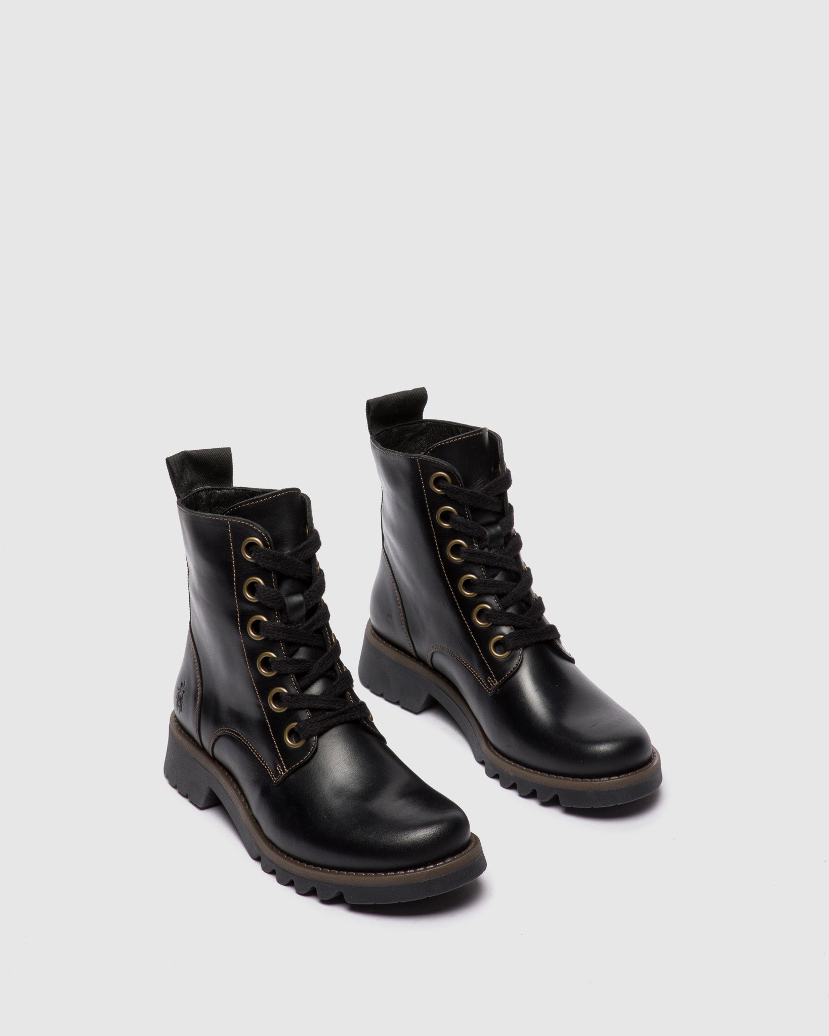 Botas de cordão em pele. Criado por Fly London.