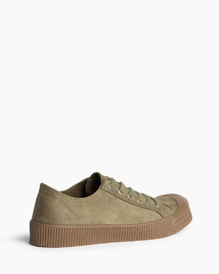 Ténis desportivos em algodão. Biqueira em borracha. Atacadores em algodão.