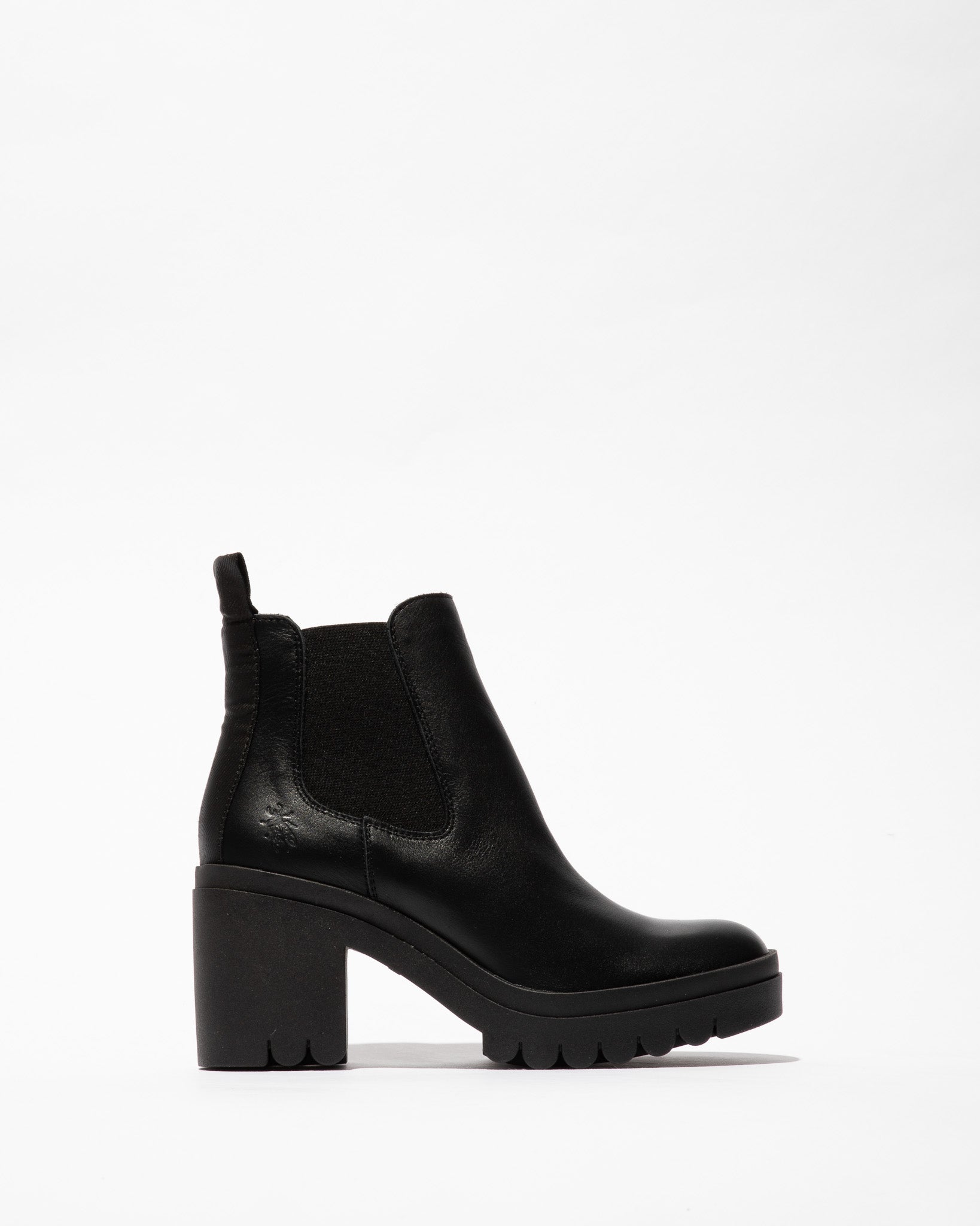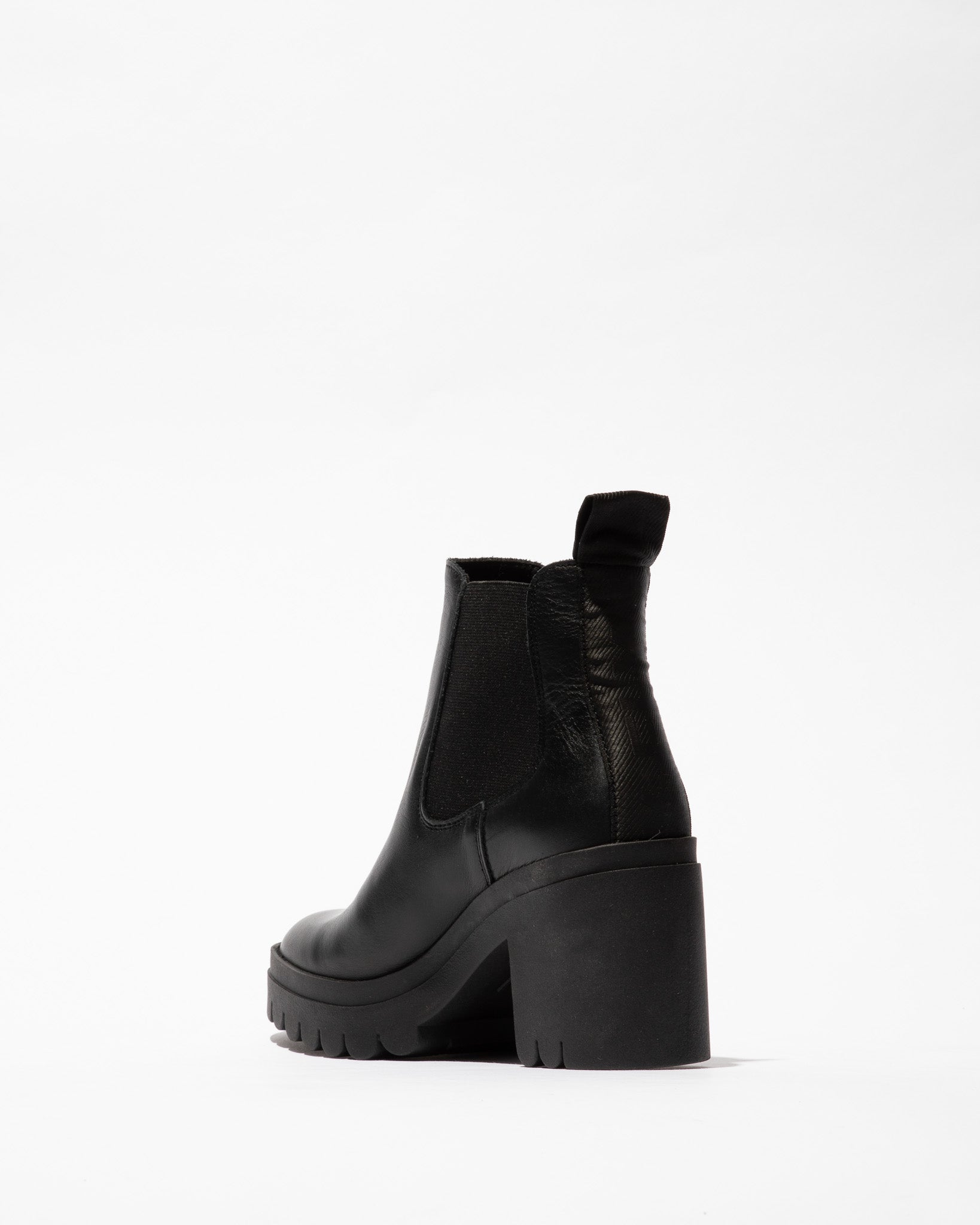 Botas de cano curto em pele. Elástico em ambas as laterais.